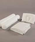 The Kids' Set: Milk: Fibres made from Milk protein a derivative of casein are combined with Tencel, a renewable raw material made from wood sourced from responsibly managed forests and plantations. The pillow is gentle on the skin, breathable, and all natural.